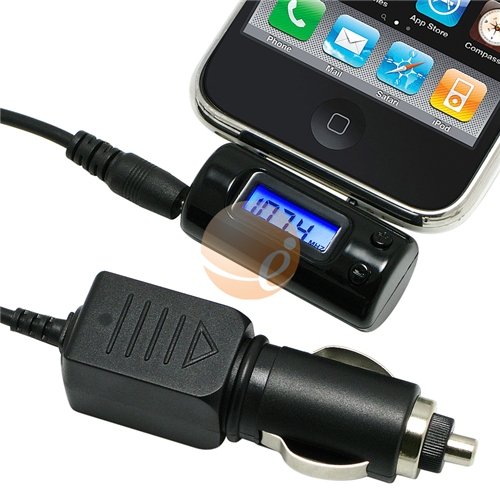 NOTE: if iPhone suggests to switch to flight mode, please do ignore the message and keep on using the currect setting. Music will stop playing when phone calls are received.The easiest way to broadcast your music while charging your iPod MP3 player Compact and stylish! Transmits stereo quality sound from your portable music player to your car FM radio. All frequency tuning allows endless selection of radio frequencies from 88.1 to 107.9 mhz with an increment of 0.1 mhz. Just tune your car radio into any unused FM channel. Then adjust the FM Transmitter to the same radio frequency. Plug FM Transmitter's into ipod port and then it's done. Just sit back and enjoy! Powered by vehicle cigarette lighter adapter LCD display. Frequency range: 88.1 - 107.9 MHz/Step For best sound performance, please set your MP3 player's volume level to MEDIUM. Then use your car stereo's volume control to adjust the output level. Operating Range: up to 30 feet / 10 meters. Optimal distance - 10 feet / 3 meters Type: Generic / Aftermarket Package includes: FM Transmitter 12V cigarette lighter charger Color: Black Compatible with: All models of Apple iPod with Dock Connector including: iPod Touch / iPod Classic / iPod nano Gen3 / iPod 5G [Video] / iPod Nano / iPod Photo / iPod Mini / iPod 3G/4G / iPhone 3G / iPod Touch 2nd Generation