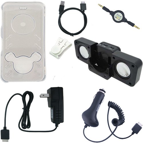 Premium Sony Walkman Accessories Combo Bundle Pack: Clear Crystal Case Cover, Car Charger, Wall / Travel / AC Adapter Charger, 2in1 Sync USB Cable, 3.5mm Auxillary / Stereo Retractable Cable, Belt Clip, and Black Foldable Speakers for the Sony Walkman NWZ E436 E438 Series MP3 Players Reviews