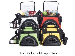 The Cooladio gives you everything you need for a great day outdoors. The cooler features an 18-can capacity, an insulated leak proof liner and a sturdy 600-dernier nylon exterior. In addition the cooler has a detachable AM/FM radio and is also MP3 ready with an audio input jack and cables for an MP3 player or CD player. There is a speaker headset jack and an AC/DC 9 V adapter jack as well. Cooler requires a 9V battery (not included) for the speakers to work. Great combination for fun.