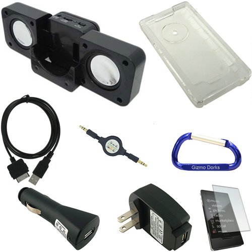 Combo Pack for the Microsoft Zune HD MP3 Player: Crystal Clear Snap-On Case, Foldable Cube Speaker Dock, USB Data Sync Charging Cable, USB Car Charger, USB Wall Travel/Home Charger, 3.5mm Auxiliary Stereo Retractable Cable, Screen Protector, and Free Carabiner Key Chain Feature